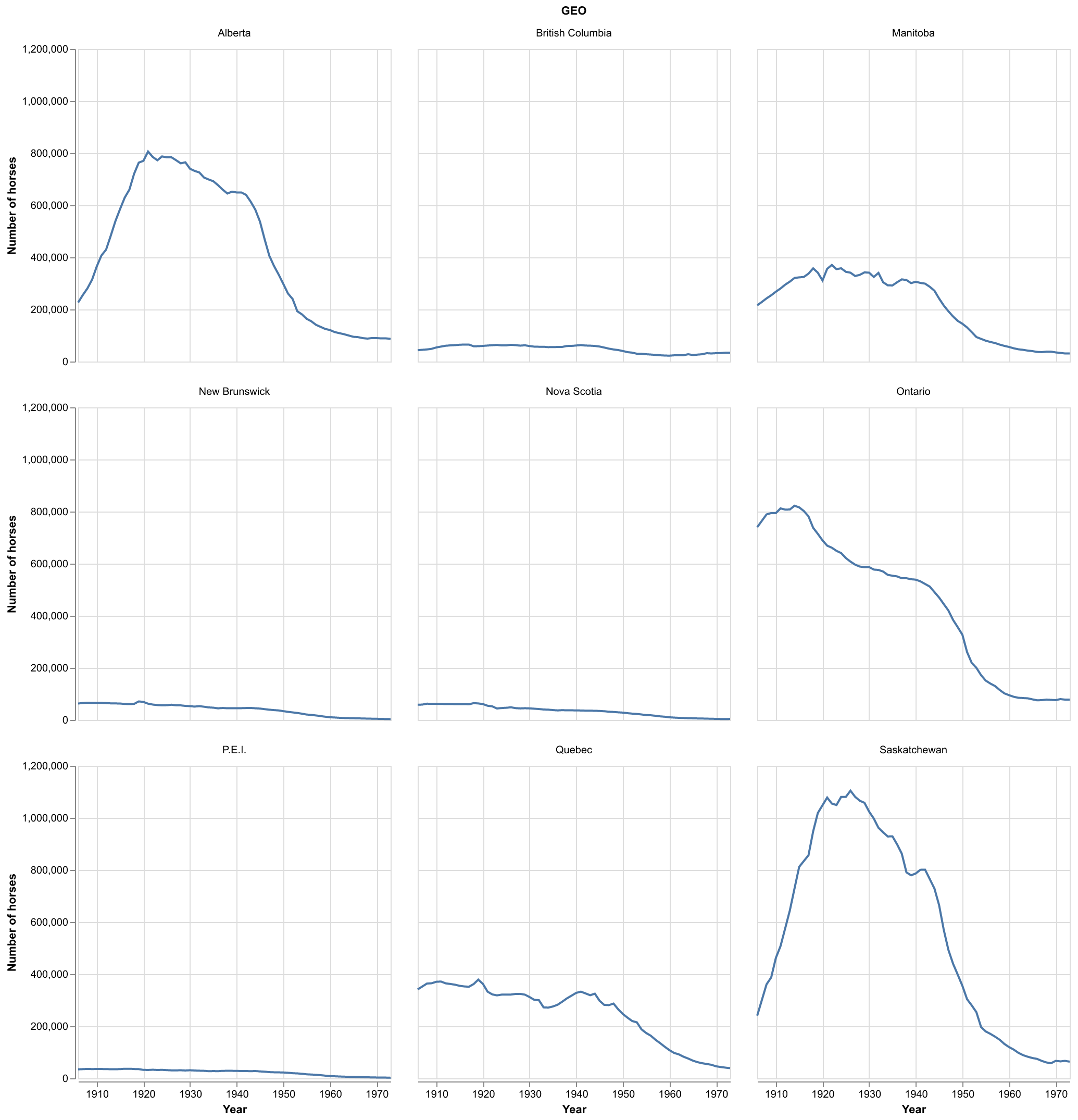 This project explores the historical population of horses in Canada between 1906 and 1972 for each province.